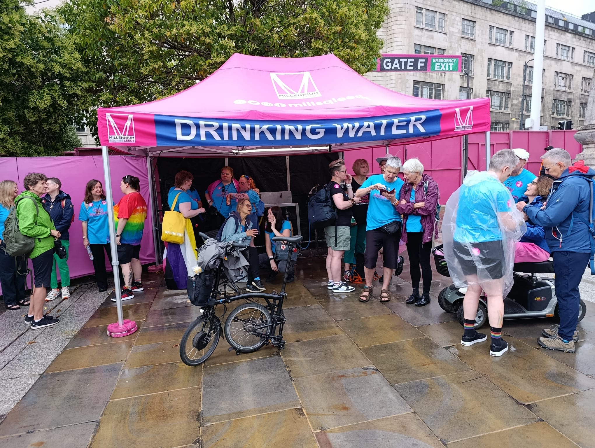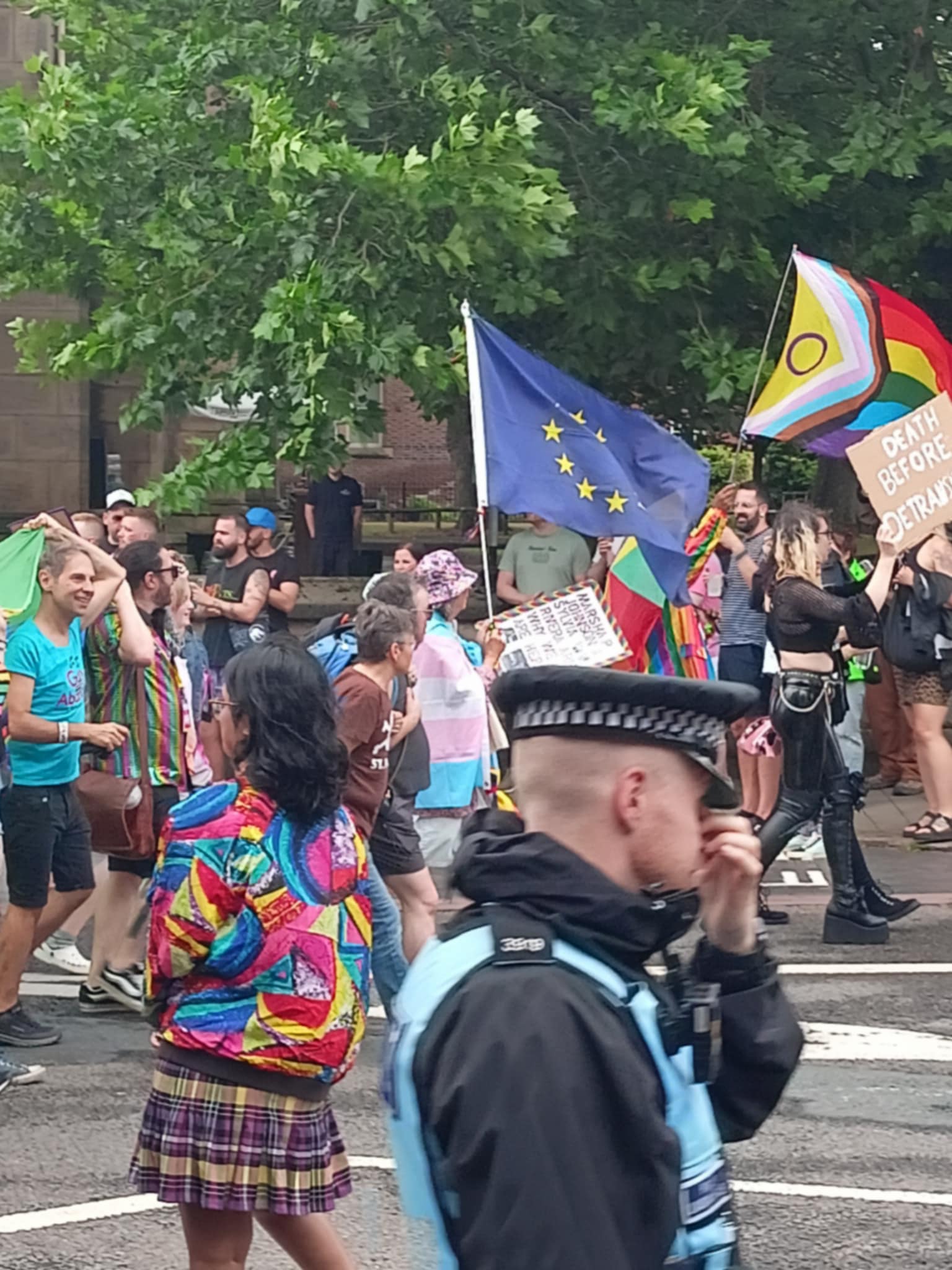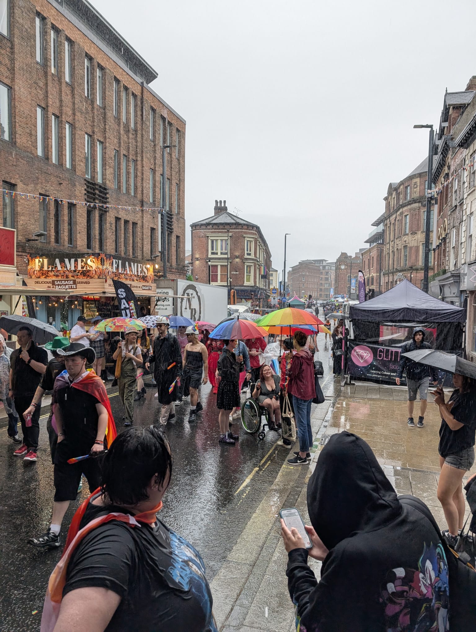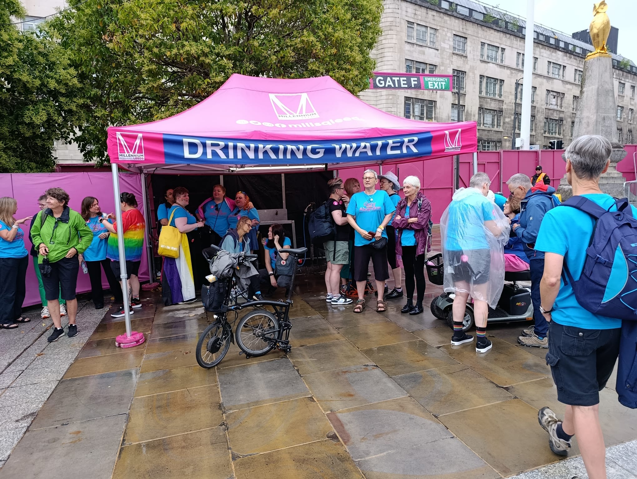 Photos from Leeds Pride 2025 when the choir performed on the main stage of Millenium square and led the parade holding the main rainbow flag